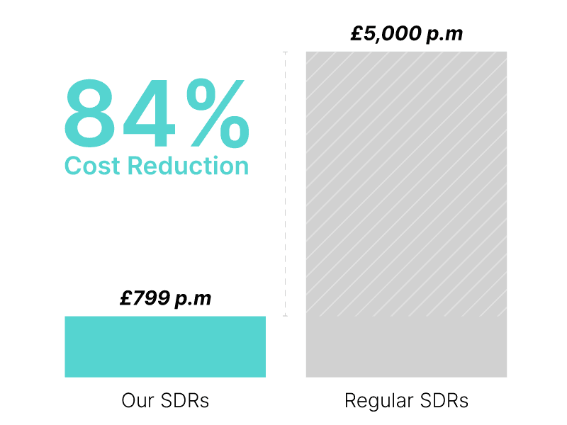 Our pricing starts from £799/month. This includes the SDRs salary and our monthly fee. However, this doesn't include any bonuses - to achieve the best results we highly recommend implementing a bonus structure to reward your SDRs for success.